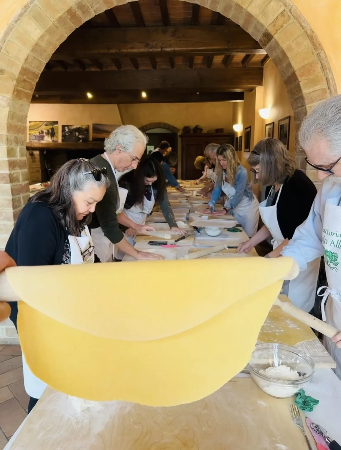 One of the most immersive experiences of our tour is a hands-on cooking class at a working farm near San Gimignano. Under the guidance of expert local cooks, we learn to roll fresh pasta like an Italian nonna, cook using locally sourced ingredients, and enjoy our homemade meal overlooking the stunning landscape. The farm produces nearly everything we cook—cattle, pigs, vegetables, wine, honey, and saffron—all cultivated with a dedication to sustainability. After class, we visit San Gimignano and enjoy gelato from one of Italy’s most famous gelaterias, whose founder trains Italy’s national pastry team for the Pastry Olympics.